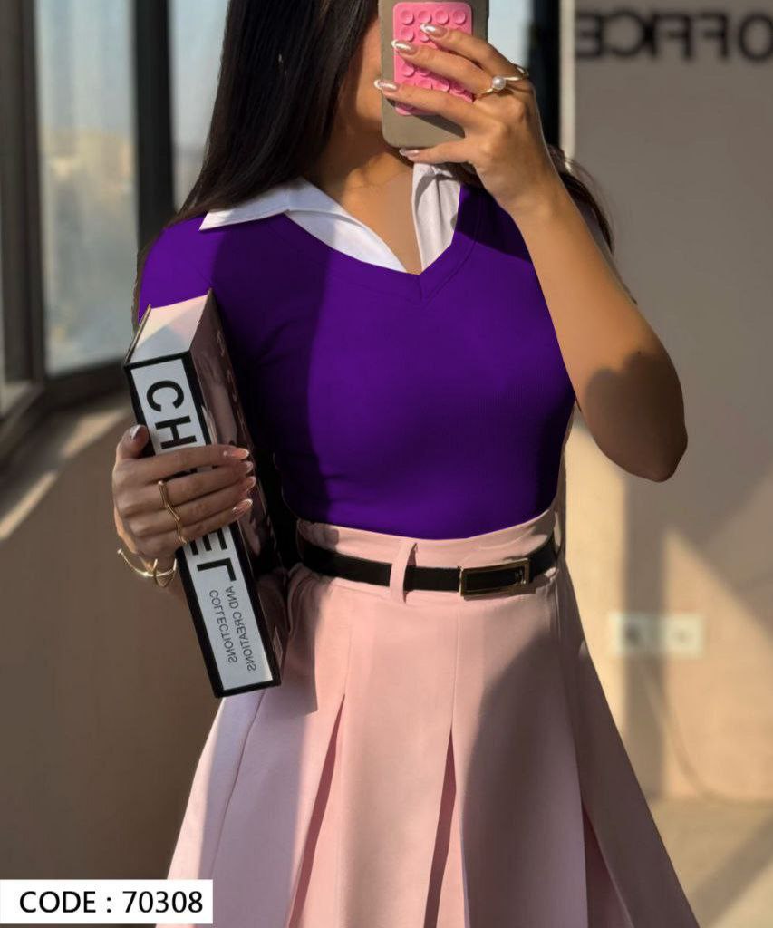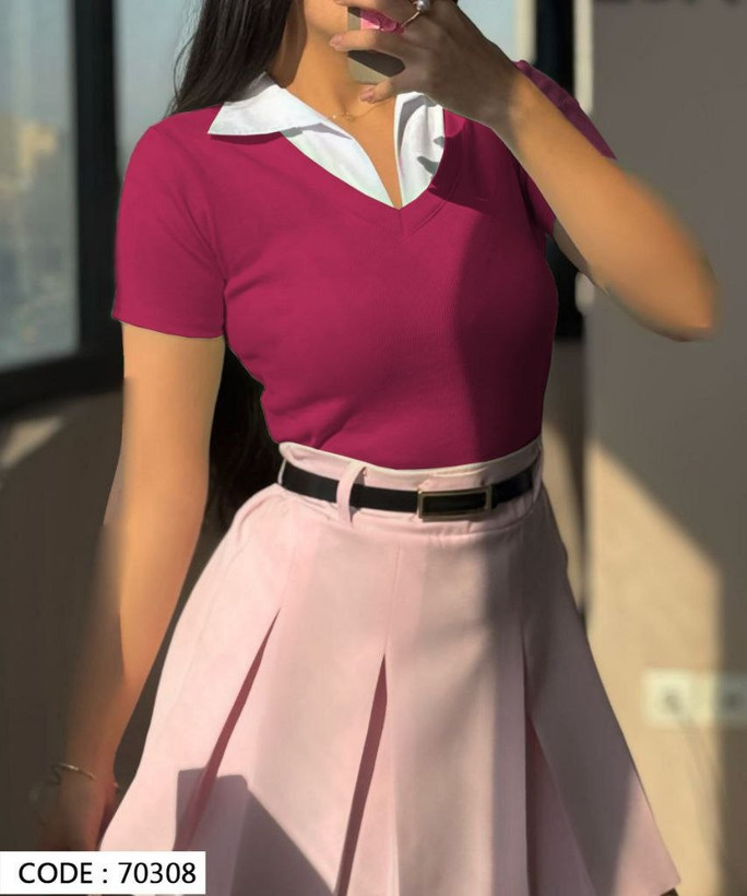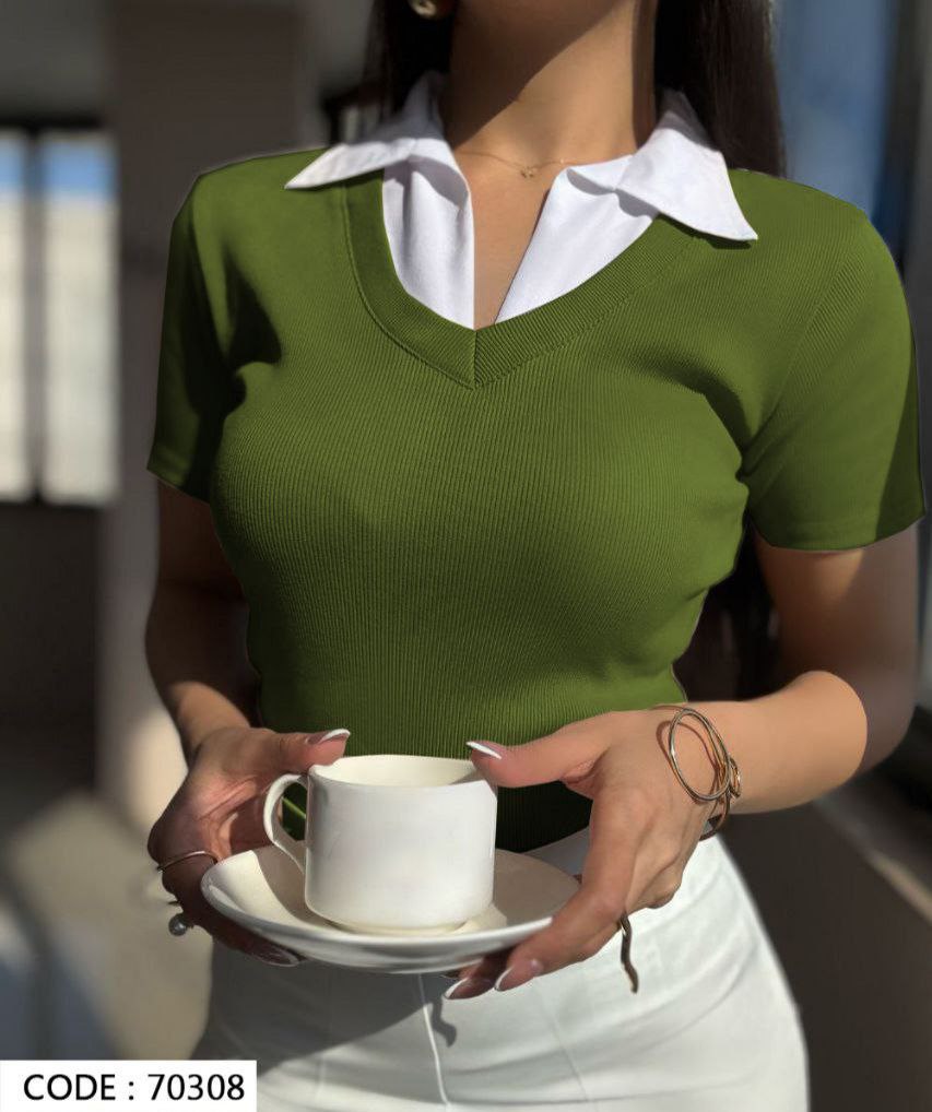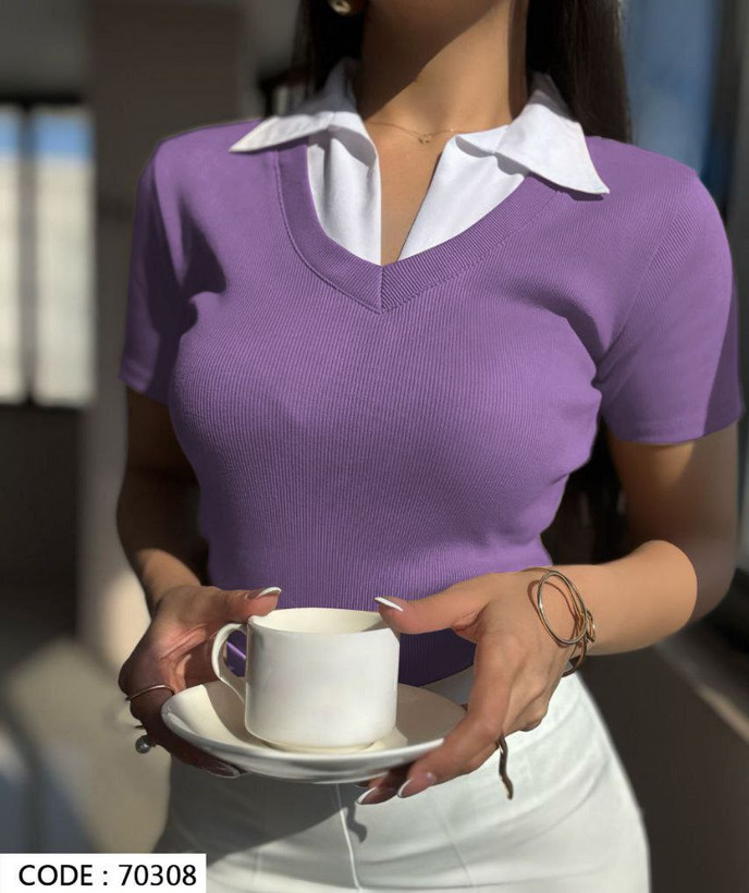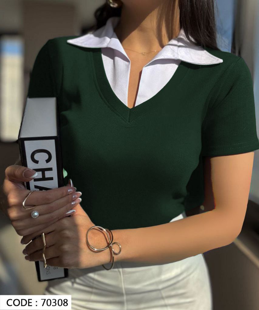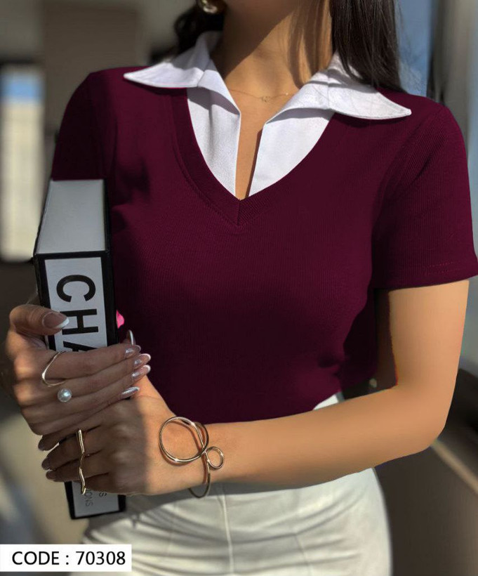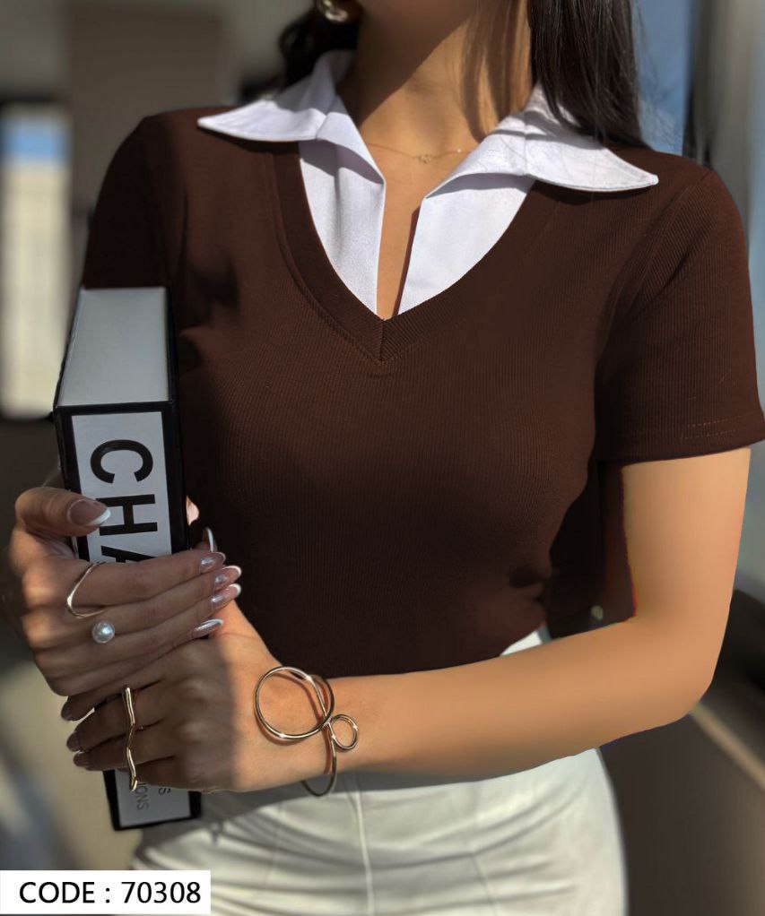 تیشرت زنانه یقه دار جنس فانریپ کش